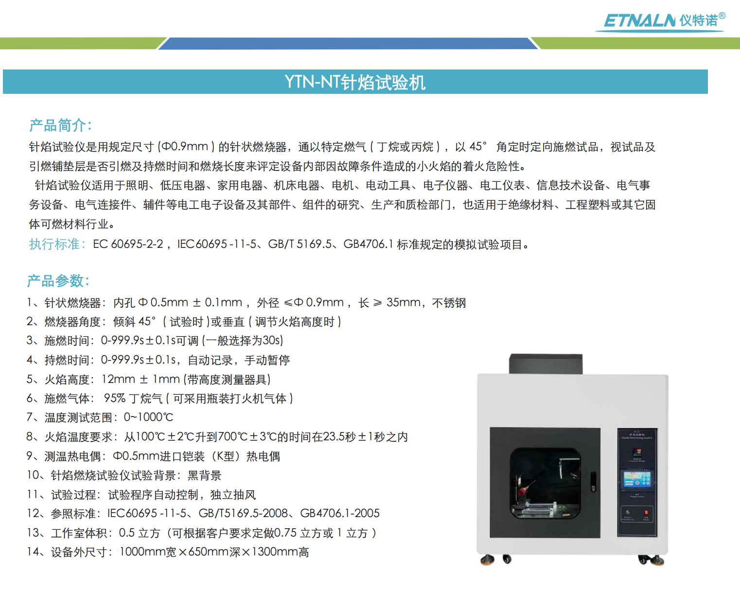 普通針焰測試:火焰施加時(shí)間為30秒;